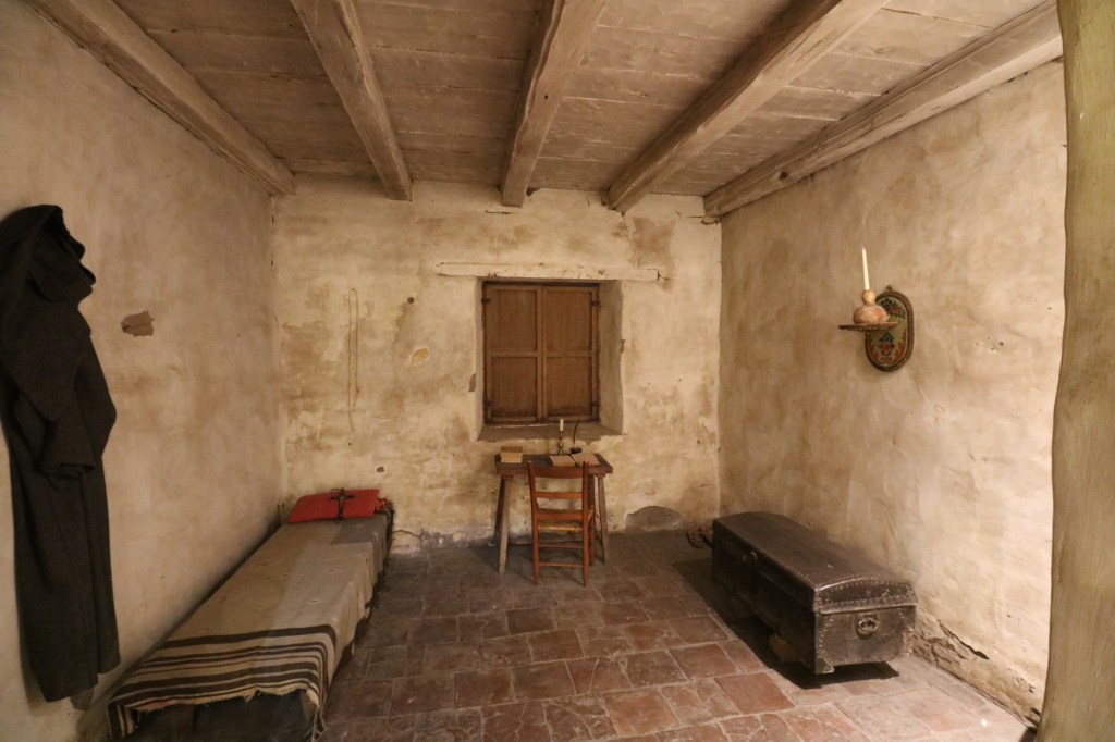 A sign reads: “In this small room, Juniperó Serra died just before 2 pm on August 28, 1784.” Harry Downie re-created the room using original materials and floor tiles to reconstruct the humble room.