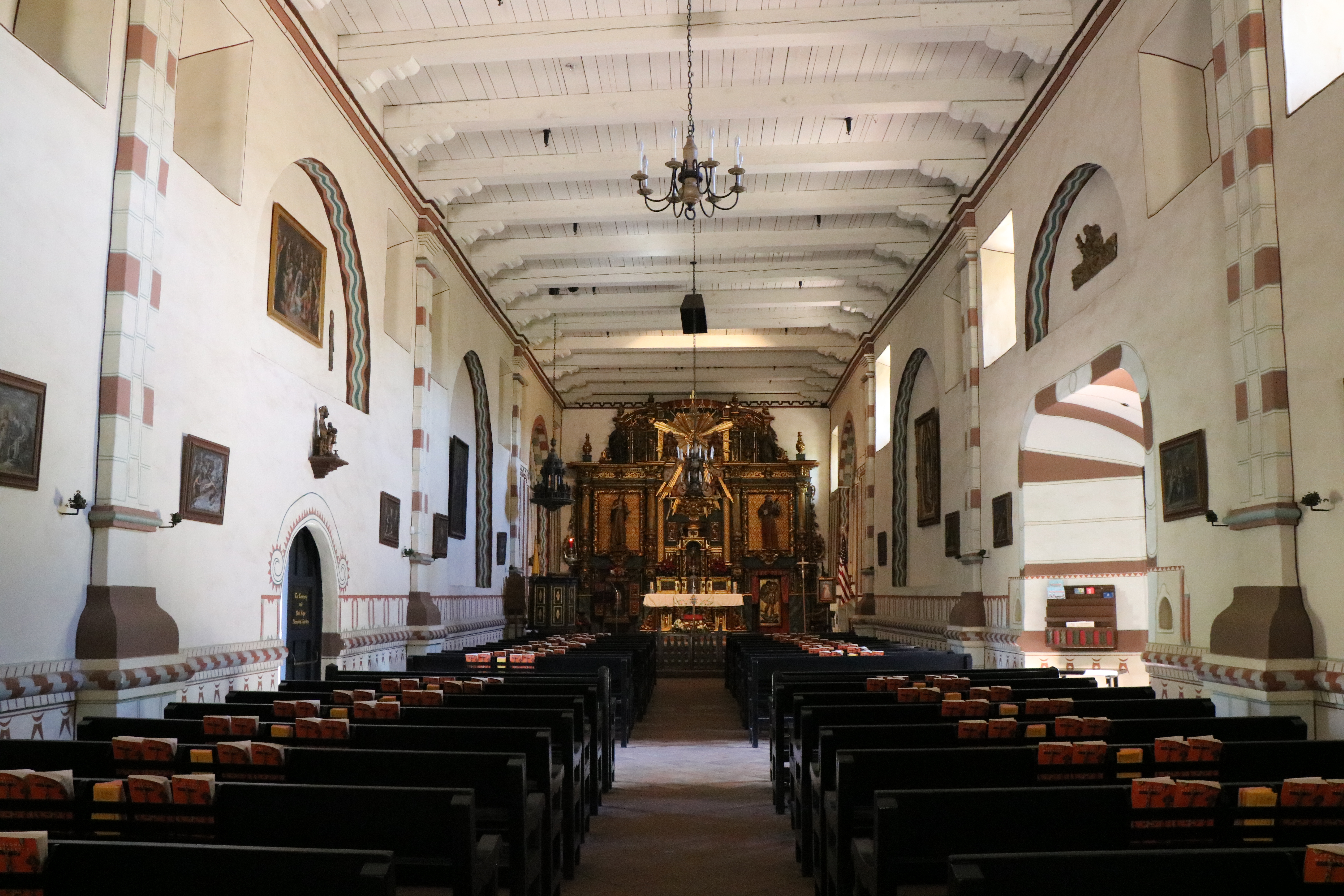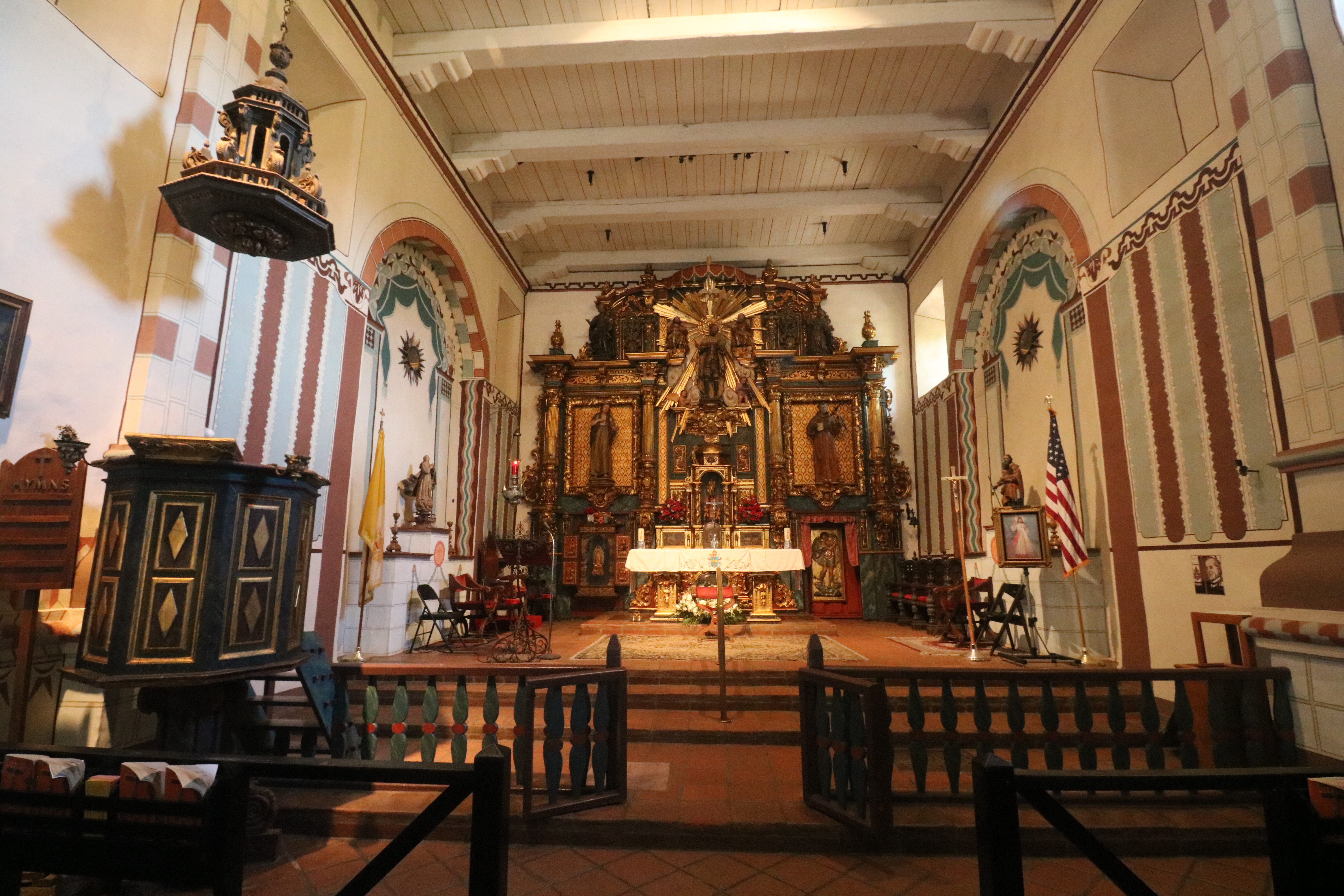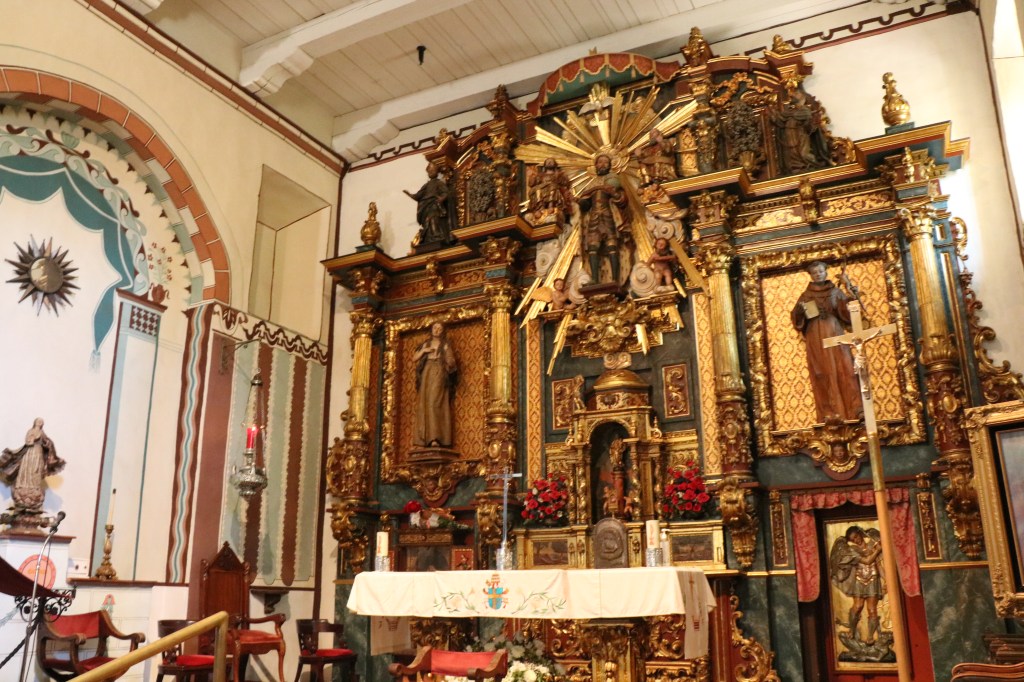 The church is a replica. The original withstood the 1812 earthquake but was later destroyed by the 1971 San Fernando earthquake. It was completely rebuilt and repairs completed in 1974. Pictured here are the Spanish reredos.