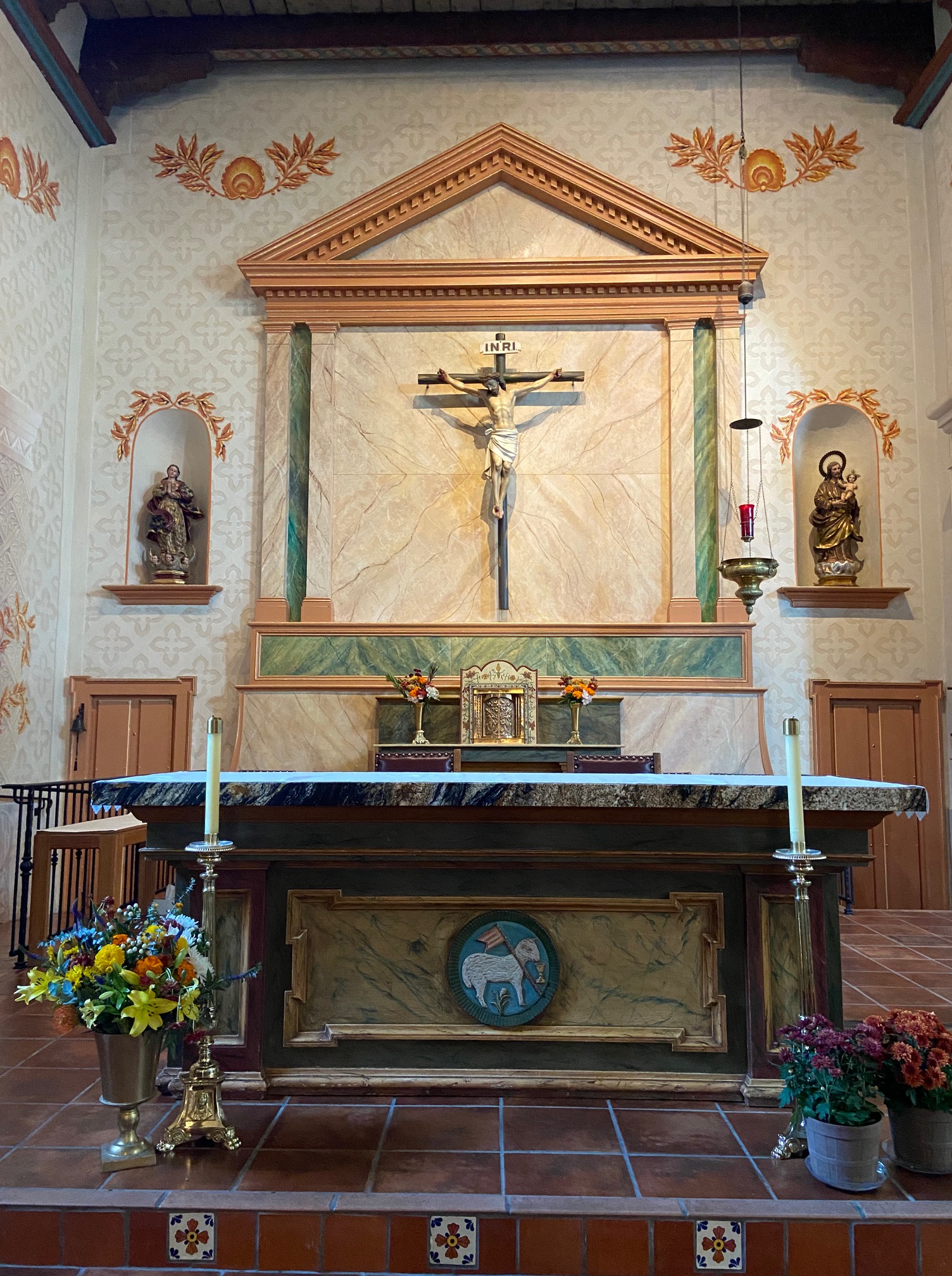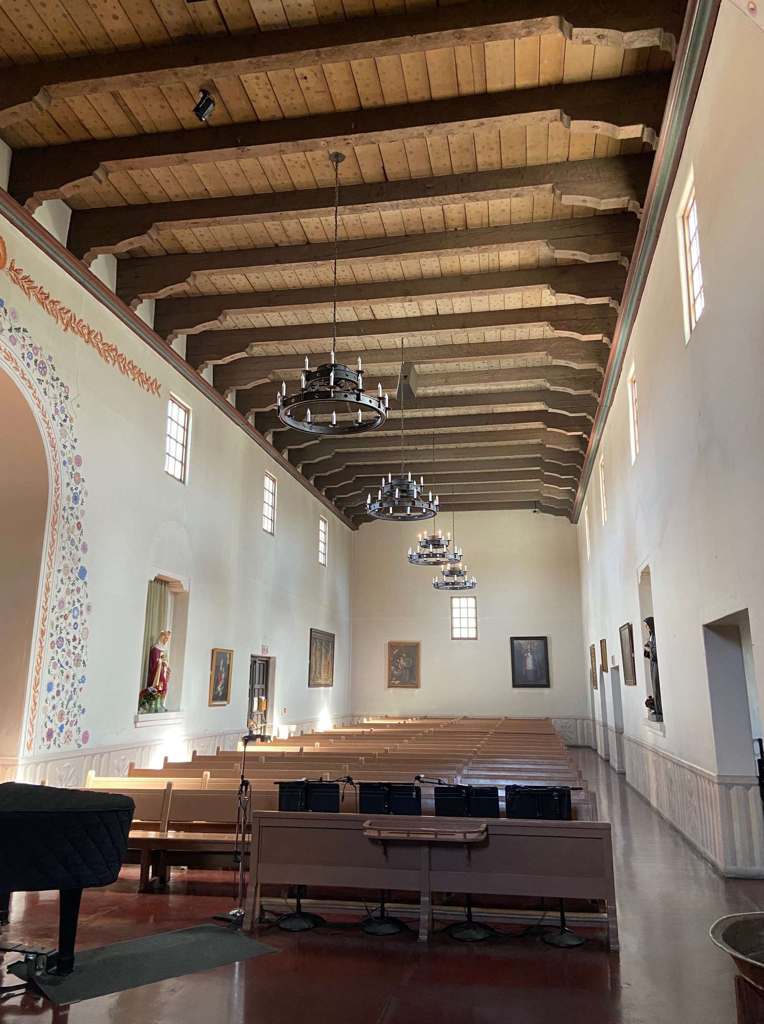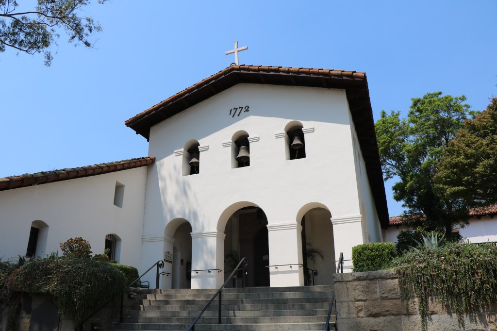 The founding date of “1772” is inscribed under the roof gable and above the belfry containing three huge church bells. The red clay tiles on the roof were first used here and later became the standard at the other missions.