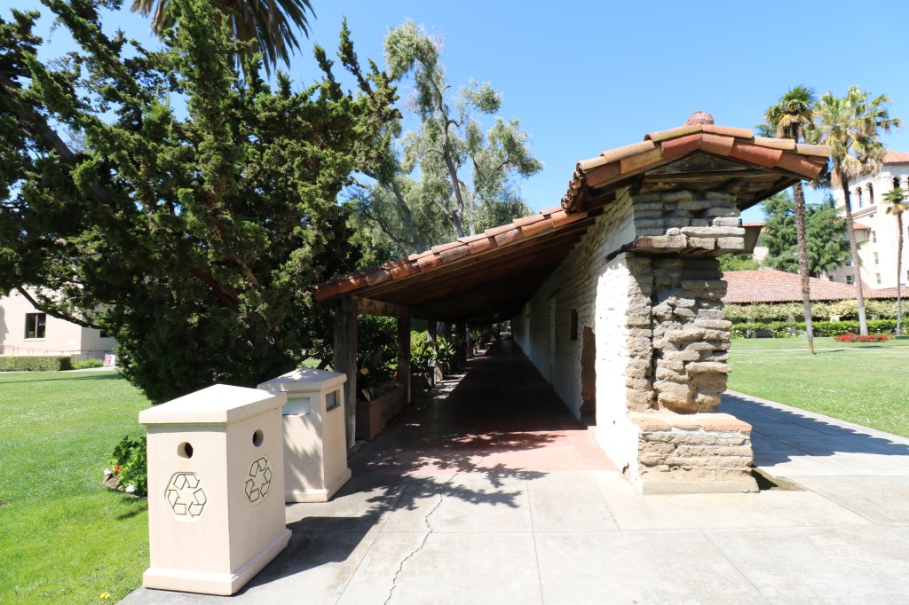 There is not much left of the mission’s quadrangle since most everything was destroyed by the 1926 fire. This adobe wall and the adobe lodge are the sole survivors from the 1822 Mission. And these are “the oldest structures on any college campus in the west”.