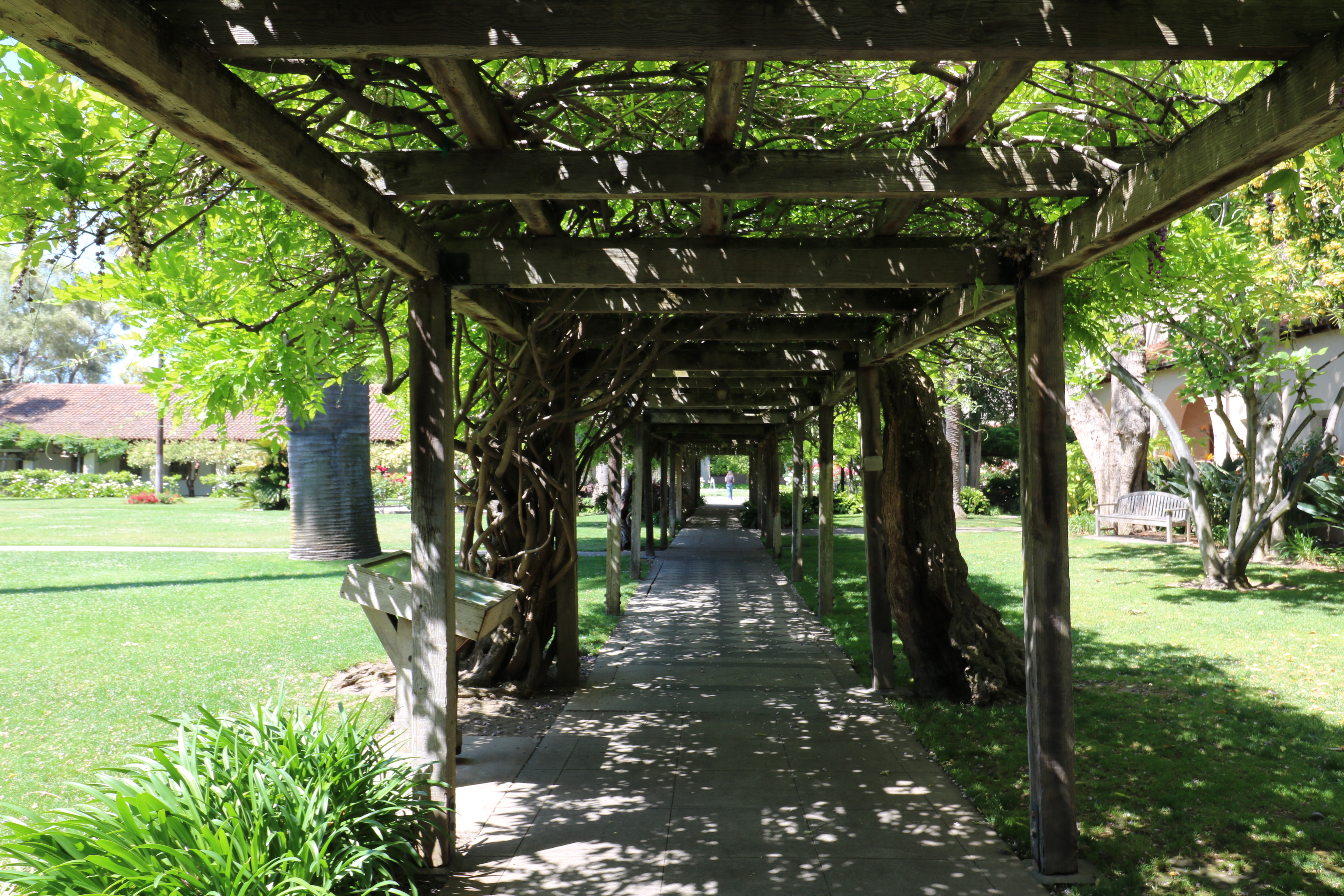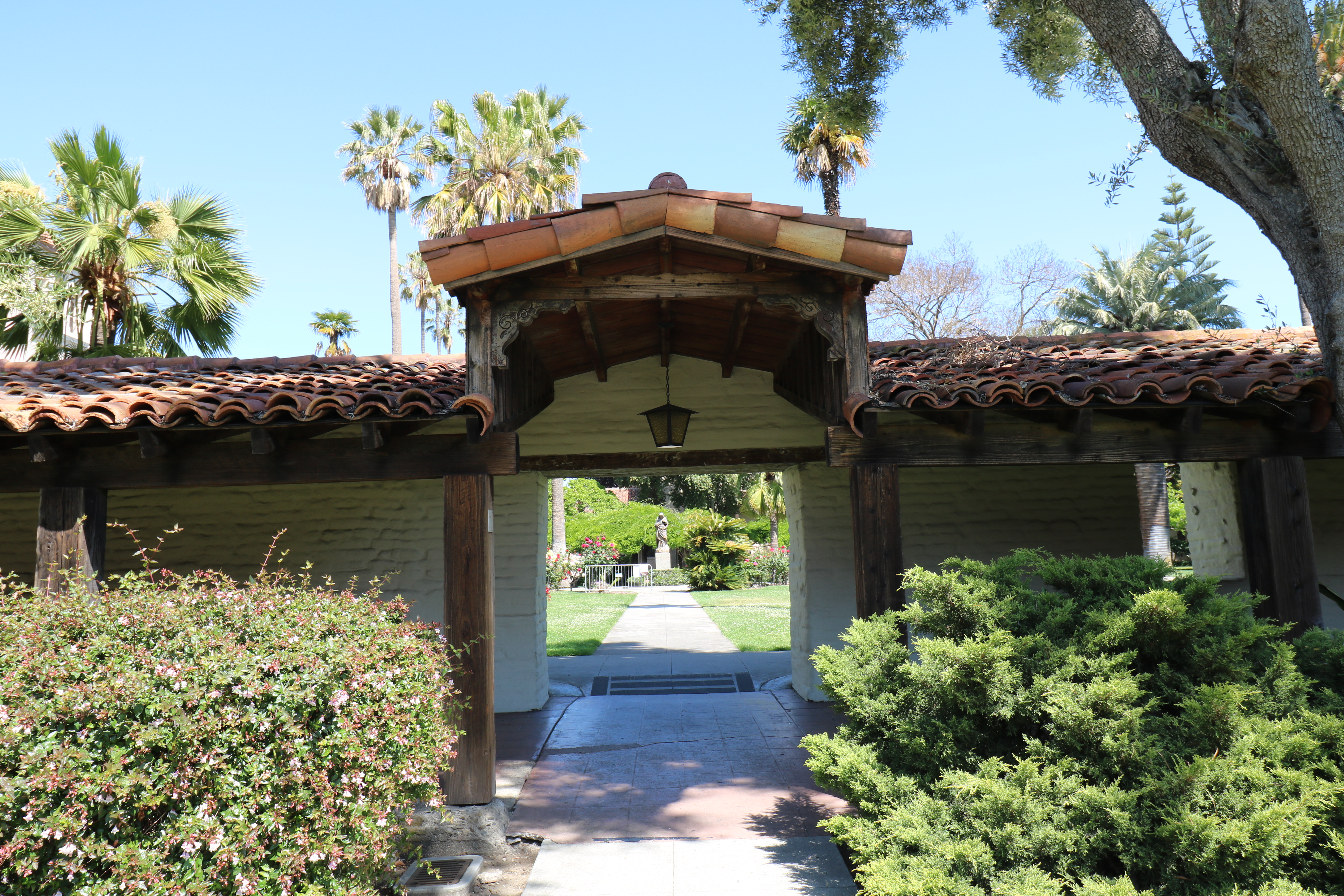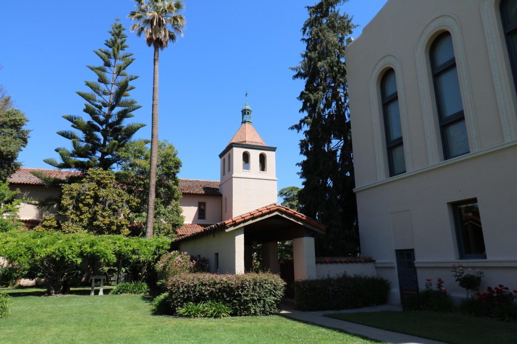 If you like mission revival architecture, this is the place to come. It is a harmonious campus with nearly all the buildings having tiled roofs and cream colored tones. Manicured lawns, roses and palms stand out along the sidewalks.