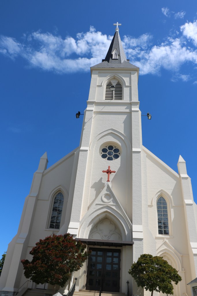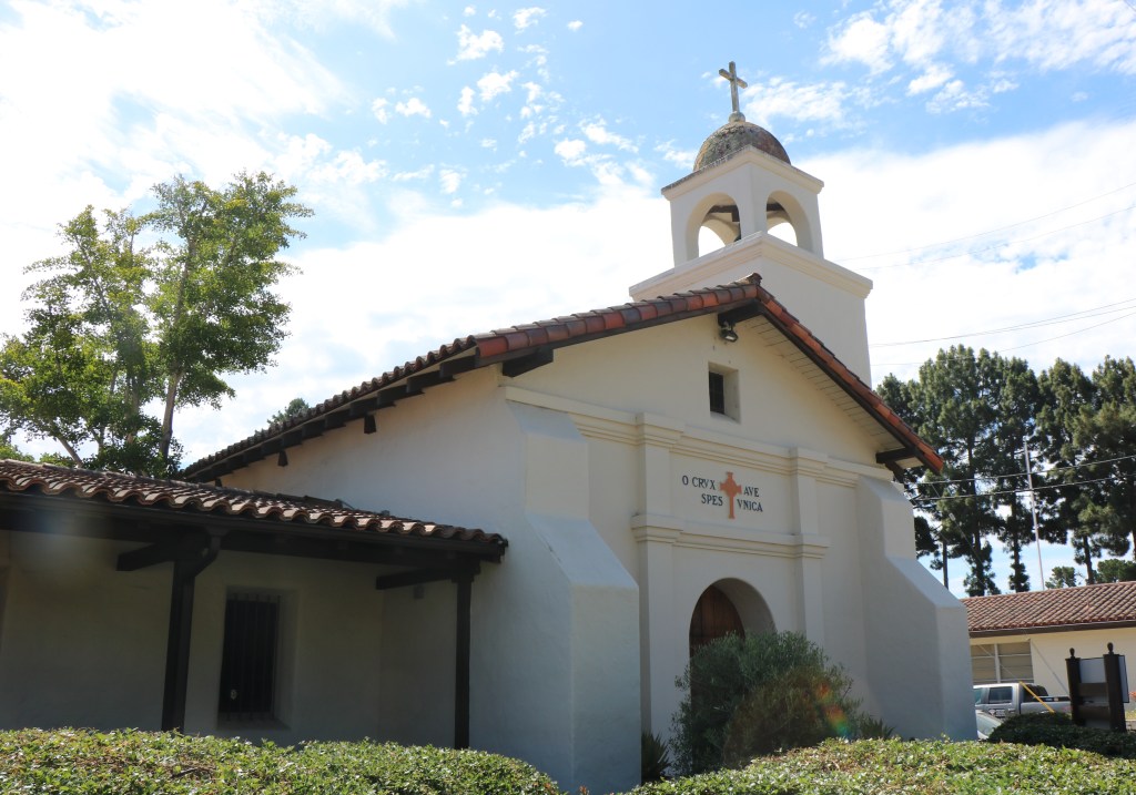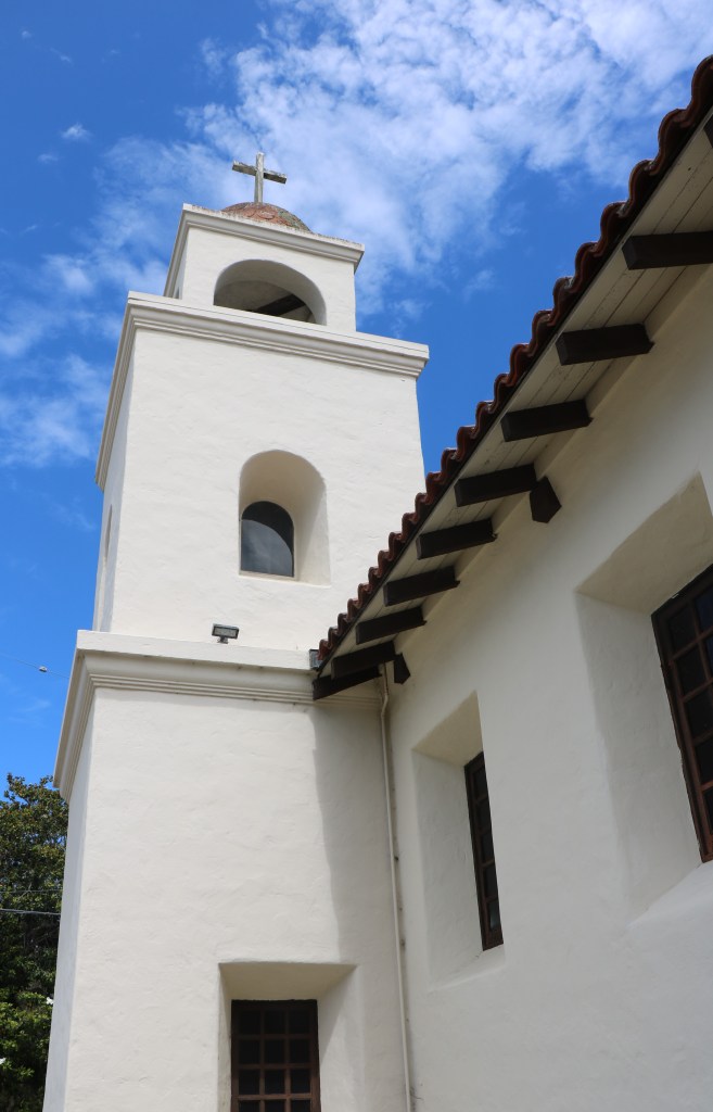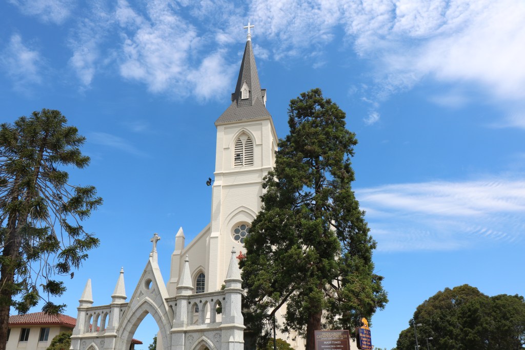 The Holy Cross Catholic Church was built in 1889 on the site of the original Mission adobe church. 100 years later, this church would be damaged by an earthquake as well. The very tall gothic church is a quite a contrast with the Mission.