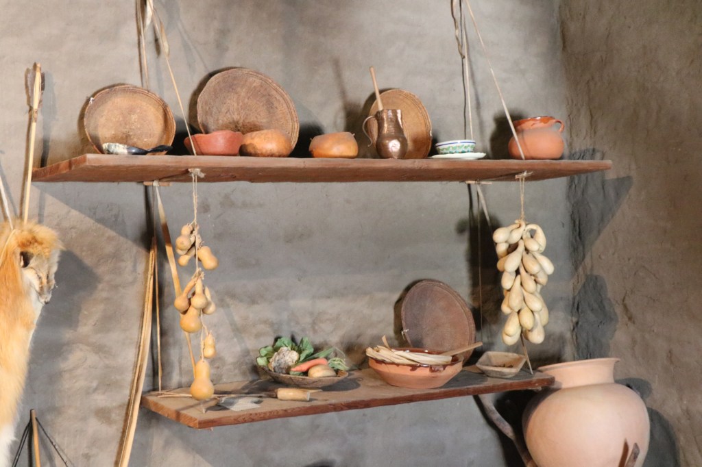 Another museum room shows how high ranking neophyte members lived. This room functioned as the bedroom, kitchen and living room. Items displayed here are both Spanish and Ohlone.